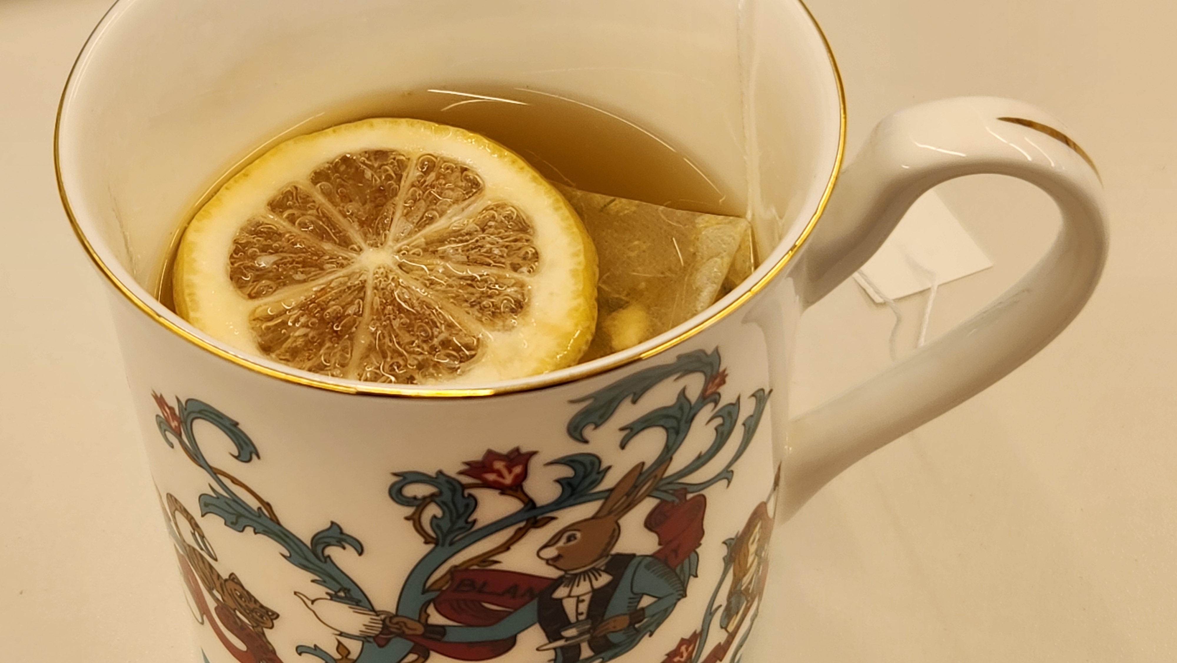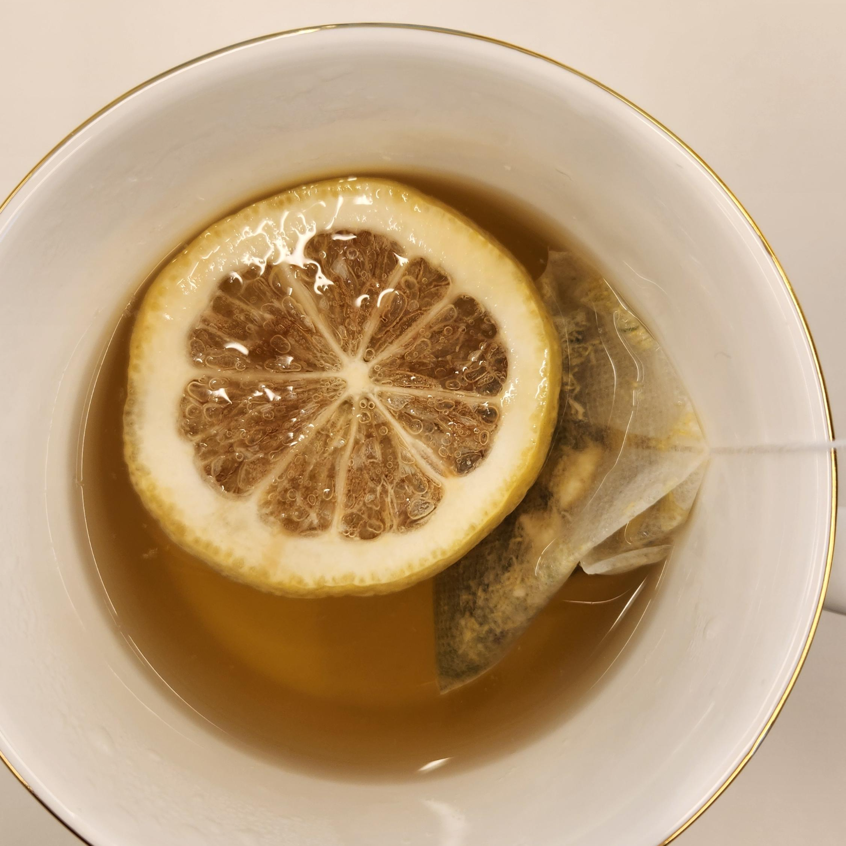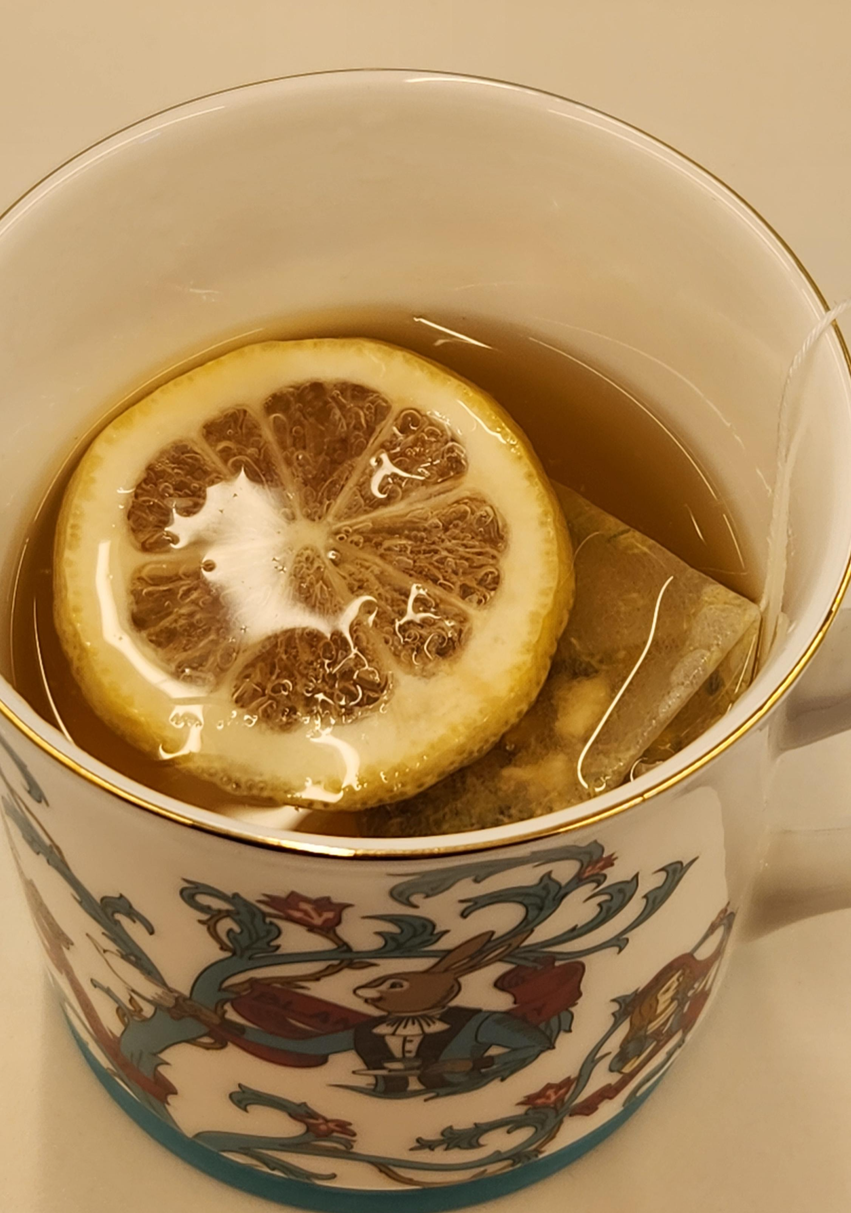 레몬칩과 티백을 90도의 물 200ml에 3분간 우린 후 마신다.
