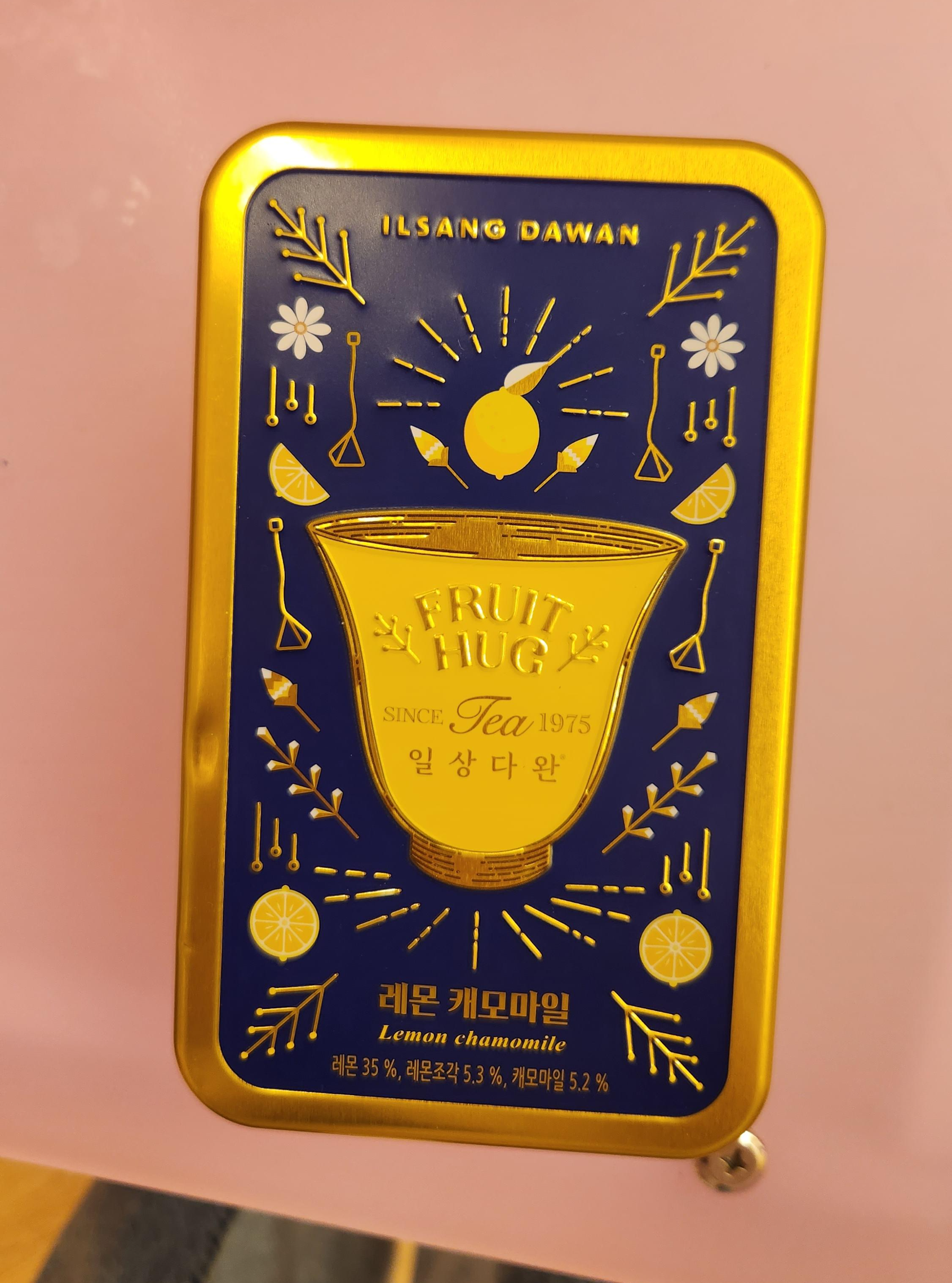 새콤한 레몬 칩과 사과 향을 가진 캐모마일을 블렌딩한 과일허그티