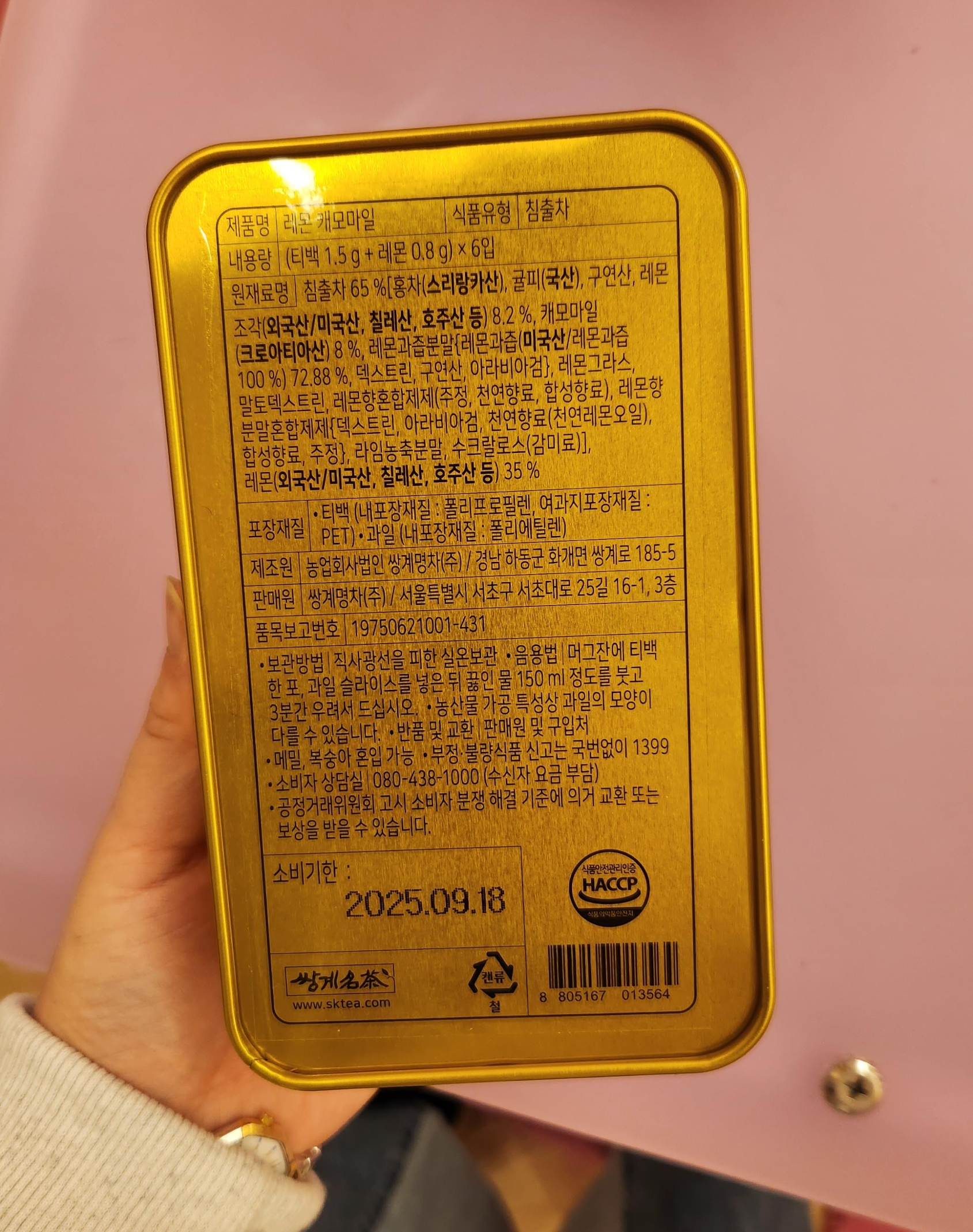 새콤달콤이라는 말이 괜히 있는 게 아니듯, 언뜻 생각하기에 왠지 새콤함과 달콤함이 합쳐지면 자석처럼 딱 맞고 잘 어울릴 것만 같다. 하지만 쌍계명차의 레몬캐모마일 차는 인공적인 달콤함과 레몬의 새콤함이 따로 노는 느낌이라 입안이 불편하다.