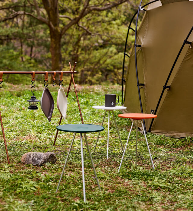 스타벅스는 매년 서머 e-프리퀀시 이벤트를 진행하며 일정 기준을 달성한 고객에게 증정품을 제공하고 있는데요. 올해의 증정품은 헬리녹스와의 협업을 통해 만들어진 '스타벅스 사이드 테이블' 3종을 포함하고 있습니다. 스타벅스 사이드 테이블은 그린, 아이보리, 브릭 오렌지 3가지 색상으로 제작되었으며, 상판을 지지하는 기둥이 헬리녹스의 모회사 DAC에서 제작하는 알루미늄 폴대와 무척이나 닮아있습니다. 헬리녹스의 기술력과 스타벅스 고유의 감성이 결합된 디자인으로, 컴팩트한 캠핑용 테이블로서 다양한 공간에서 활용할 수 있다는 점에서, 두 기업의 협업은 윈윈 전략의 적절한 예시로 보입니다.